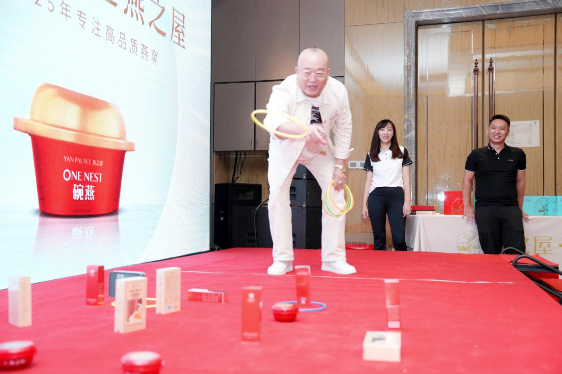 觥籌交錯(cuò)間,歌舞助雅興。臺(tái)下貴賓開懷暢飲,品美味佳肴,臺(tái)上小提琴、舞蹈輪番上演,掀起視聽盛宴。其中,燕之屋工作人員特別準(zhǔn)備感恩舞蹈,以滿滿誠(chéng)意答謝在座貴賓。席間,燕之屋還精心安排套圈游戲,賓客們熱情參與,盡情享受游戲的樂趣。