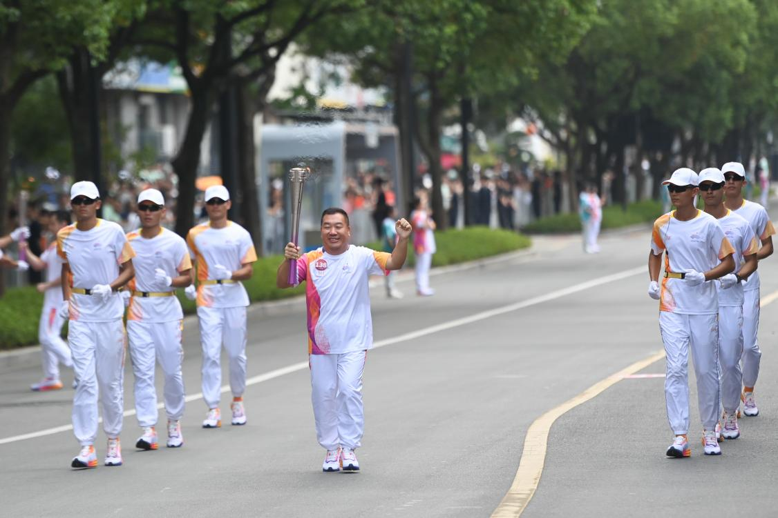 圖:杭州第19屆亞運(yùn)會(huì)火炬?zhèn)鬟f臺(tái)州站