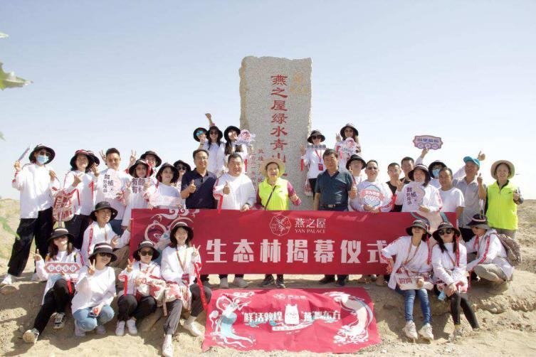 2002年,NPO綠色生命組織理事長易解放踏上植樹造林的公益之路,20余年間,從內(nèi)蒙古到甘肅,累計綠化4萬畝沙漠和戈壁,在綠色生態(tài)公益組織的帶動下,一批又一批的志愿者加入到“造綠”的隊伍中。作為燕窩行業(yè)“領頭燕”,燕之屋堅持奉行“人與自然和諧共生”的生態(tài)理念,以實際行動守護青山綠水。2021年,燕之屋接過“綠色生命”接力棒,攜手NPO綠色生命組織理事長易解放走進敦煌,與二十多位燕之屋粉絲共同種下樹苗,一起見證燕之屋綠水青山生態(tài)林揭碑儀式,并向NPO綠色生命環(huán)保公益組織捐款,共同為敦煌筑起防風固沙生命線,守護人與自然和諧之美。