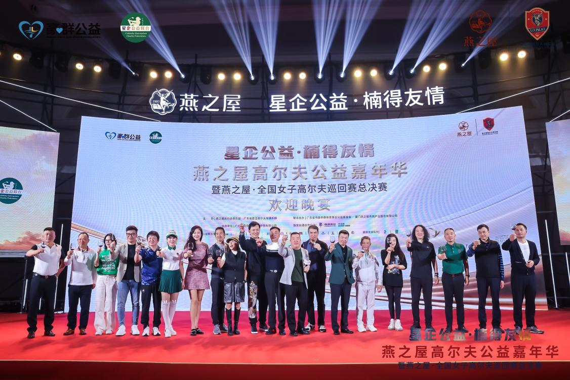 28日晚,“星企公益·楠得友情”燕之屋高爾夫公益嘉年華暨燕之屋·全國(guó)女子高爾夫巡回賽總決賽歡迎晚宴隆重舉辦,燕之屋高爾夫俱樂(lè)部榮譽(yù)主席、粵港澳大灣區(qū)高爾夫球聯(lián)誼會(huì)主席丁國(guó)旗,燕之屋副董事長(zhǎng)、燕之屋高爾夫俱樂(lè)部主席鄭文濱,燕之屋總裁、燕之屋高爾夫俱樂(lè)部副主席李有泉,燕之屋監(jiān)事長(zhǎng)、燕之屋(廈門(mén))高爾夫俱樂(lè)部會(huì)長(zhǎng)鄭峰,燕之屋股東薛一瑤,燕之屋副總經(jīng)理、連鎖事業(yè)部總經(jīng)理翁惠貞,燕之屋高爾夫俱樂(lè)部副主席、燕之屋高爾夫俱樂(lè)部總隊(duì)長(zhǎng)牛雷,四川郎酒集團(tuán)總裁劉毅等領(lǐng)導(dǎo)嘉賓出席活動(dòng)。著名導(dǎo)演、演員、星企公益主席、演員朱時(shí)茂,廣東省浙江商會(huì)執(zhí)行會(huì)長(zhǎng),星企公益發(fā)起人之一程慧秋,以及李小雙、廖京生、撈仔老師、欒樹(shù)、黃海冰、陳保元、謝東娜、吉婭、黃江、張麗芬、胡定余、應(yīng)達(dá)楚等星企公益明星大使、理事嘉賓親臨現(xiàn)場(chǎng),接力傳遞愛(ài)與溫暖,在公益之夜為愛(ài)發(fā)聲。