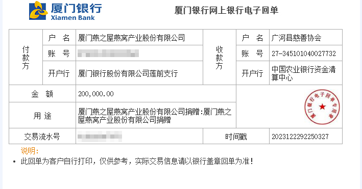 圖:燕之屋向甘肅省臨夏州積石山縣捐贈(zèng)救災(zāi)資金20萬(wàn)元