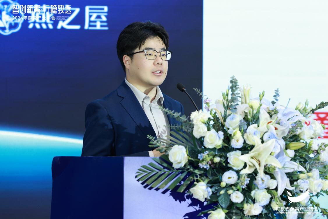 在科研成果分享環(huán)節(jié),燕之屋高級(jí)技術(shù)經(jīng)理郭寶忠發(fā)表《燕之屋燕窩肽美白、抗衰老作用及分子機(jī)制研究》主題演講,向與會(huì)人員詳細(xì)介紹了燕窩肽的形成、健康效應(yīng),并表示,經(jīng)第三方人體功效評(píng)價(jià)試驗(yàn),0.3%濃度燕窩肽-L具有美白的功效*(*杭州華妝科技有限公司檢驗(yàn)報(bào)告,報(bào)告編號(hào):HZ-F-2300161-1)。近年來,燕之屋深耕燕窩肽科研領(lǐng)域,關(guān)于燕窩肽的研究成果發(fā)表于JCR Q1區(qū)期刊Journal of Functional Foods為首的系列SCI收錄期刊,受到國(guó)際認(rèn)可。燕之屋的燕窩肽科研技術(shù)不僅獲中國(guó)、香港地區(qū)、國(guó)際等專利受理,更獲得2022年度營(yíng)養(yǎng)健康產(chǎn)業(yè)創(chuàng)新技術(shù)獎(jiǎng)、第三屆國(guó)際活性肽論壇行業(yè)創(chuàng)新獎(jiǎng)等多項(xiàng)榮譽(yù),在拓寬燕窩基礎(chǔ)研究范疇、提升燕窩營(yíng)養(yǎng)價(jià)值方面貢獻(xiàn)企業(yè)力量。
