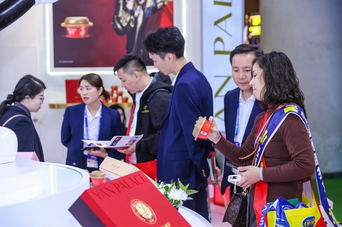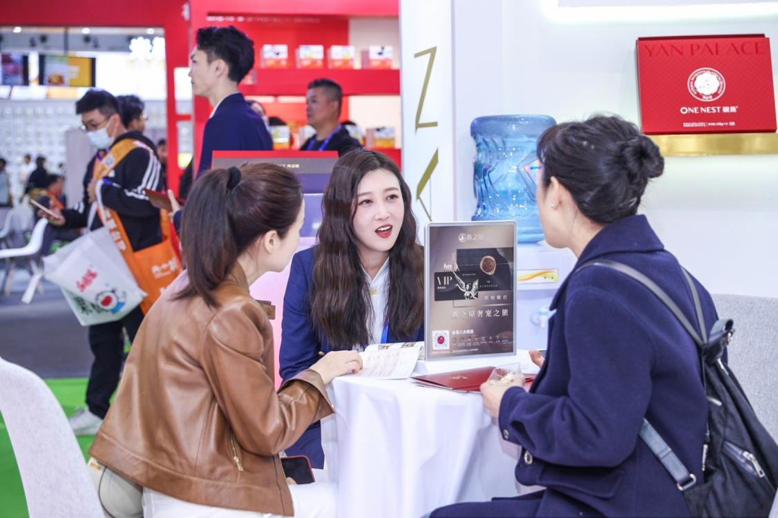 憑借高品質(zhì)與好口碑,截至2022年,燕之屋已連續(xù)七年燕窩銷售規(guī)模全國第一*(*燕之屋在2016-2022年中國境內(nèi)包裝燕窩行業(yè)連續(xù)七年燕窩銷售額全國第一,備注:北京中研世紀(jì)咨詢有限公司,全國包裝燕窩品牌,中國境內(nèi)2016年-2022年全年終端零售額分別統(tǒng)計(jì)排名;包裝燕窩指即食燕窩、鮮燉燕窩、干燕窩;于2023年2月9日完成調(diào)研),2022年在全國220個(gè)城市核心地段開設(shè)700多家實(shí)體終端,燕窩專營門店數(shù)量全國領(lǐng)先(燕之屋在2022年中國境內(nèi)包裝燕窩行業(yè)燕窩專營門店數(shù)量全國領(lǐng)先,來源:弗若斯特沙利文基于中國境內(nèi)包裝燕窩行業(yè)獨(dú)立市場(chǎng)研究),夯實(shí)燕窩行業(yè)地位,成為越來越多消費(fèi)者心中的燕窩優(yōu)選品牌?,F(xiàn)場(chǎng),燕之屋展位人氣火爆,前來咨詢和洽談的客商、觀展人群絡(luò)繹不絕,熱鬧非凡。
