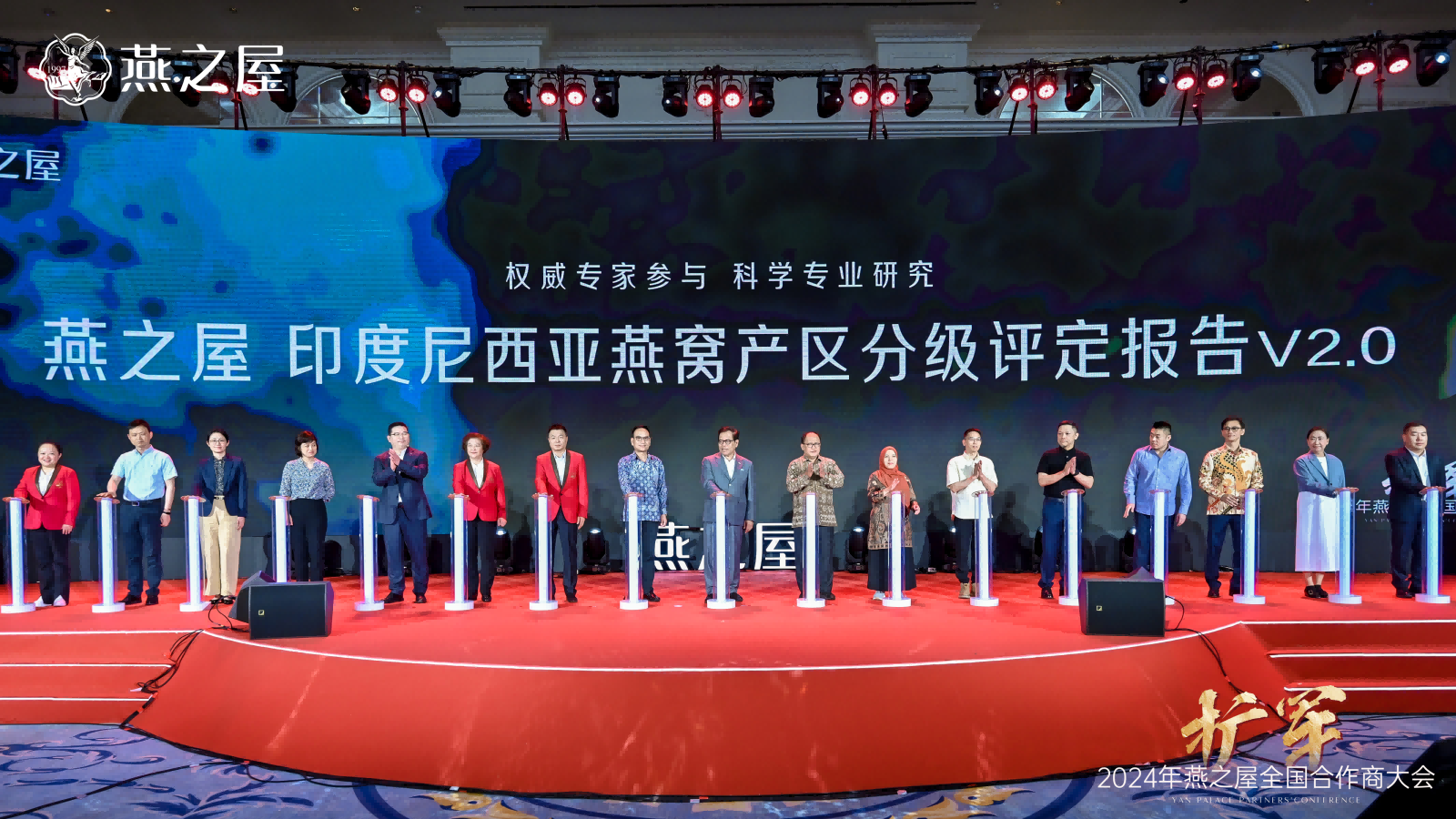 隨后,印度尼西亞駐華大使周浩黎,印度尼西亞動植物檢疫標準檢驗中心主任斯利揚托,廈門海關(guān)技術(shù)中心、國家燕窩及燕窩制品檢測重點實驗室主任徐敦明,印度尼西亞動植物檢疫標準檢驗中心研究員海爾米,印度尼西亞燕窩協(xié)會養(yǎng)護部部長安東,印度尼西亞燕窩協(xié)會國際貿(mào)易部副部長何文輝,江南大學未來食品科學中心鐘芳教授、陳茂深教授,華南理工大學食品科學與工程學院任嬌艷教授,印度尼西亞027工廠董事長魯?shù)?,印度尼西?04工廠普爾沃蘇特里斯諾,印度尼西亞014工廠露西亞娜,燕之屋執(zhí)行董事、副董事長鄭文濱,燕之屋執(zhí)行董事、總裁李有泉,燕之屋董事、副總經(jīng)理、供應鏈中心總經(jīng)理黃丹艷,燕之屋副總經(jīng)理、研發(fā)技術(shù)總監(jiān)范群艷,燕之屋供應鏈中心總監(jiān)魏溦等領(lǐng)導和嘉賓共同啟動發(fā)布《燕之屋印度尼西亞燕窩產(chǎn)區(qū)分級評定報告V2.0》。這標志著燕之屋在專業(yè)化、標準化、高質(zhì)量發(fā)展上更進一步。