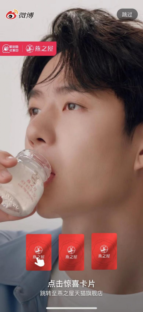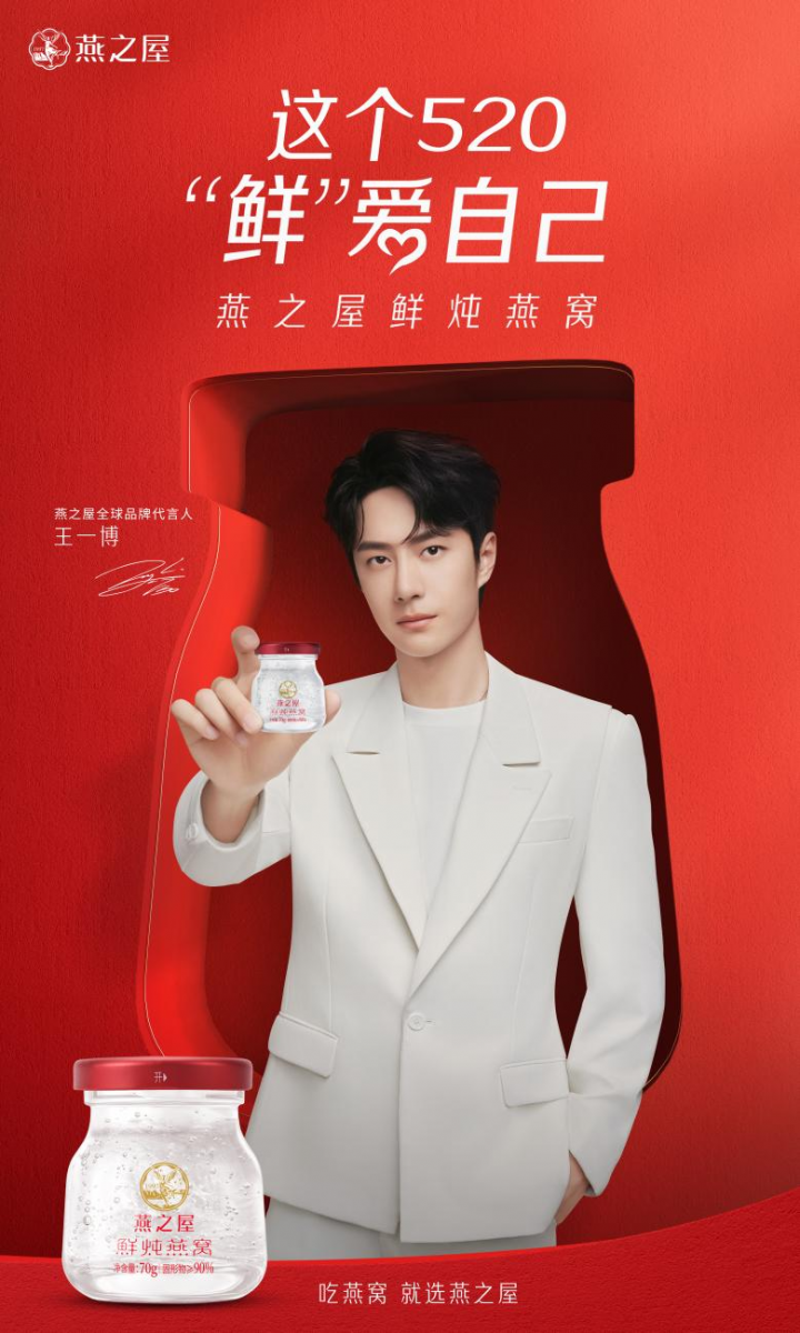 5月20日,燕之屋官宣王一博成為全球品牌代言人,全新品牌代言TVC大片同步釋出,由王一博鮮活開(kāi)啟燕之屋520“鮮”愛(ài)自己計(jì)劃。官宣當(dāng)日,燕之屋與王一博于微博發(fā)布官宣博文,同時(shí)微博上線官宣開(kāi)屏廣告,話題#王一博燕之屋全球品牌代言人#沖上微博熱搜。