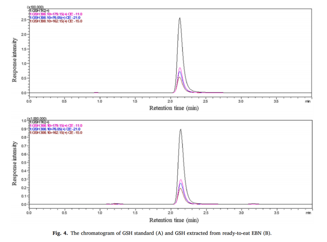 燕窩作為歷史悠久的滋補佳品,深受國人喜愛和追捧。谷胱甘肽是一種重要的抗氧化劑,天然存在于動植物體內(nèi),具有抗氧化、增強免疫、保護肝臟和解毒等多種生物學功能(Bonet-Aleta et al., 2022; Zhou et al., 2022)。谷胱甘肽的含量關系到燕窩的營養(yǎng)價值,因此準確和科學的測定燕窩中是否存在谷胱甘肽,以及測定谷胱甘肽的含量顯得尤為重要。
