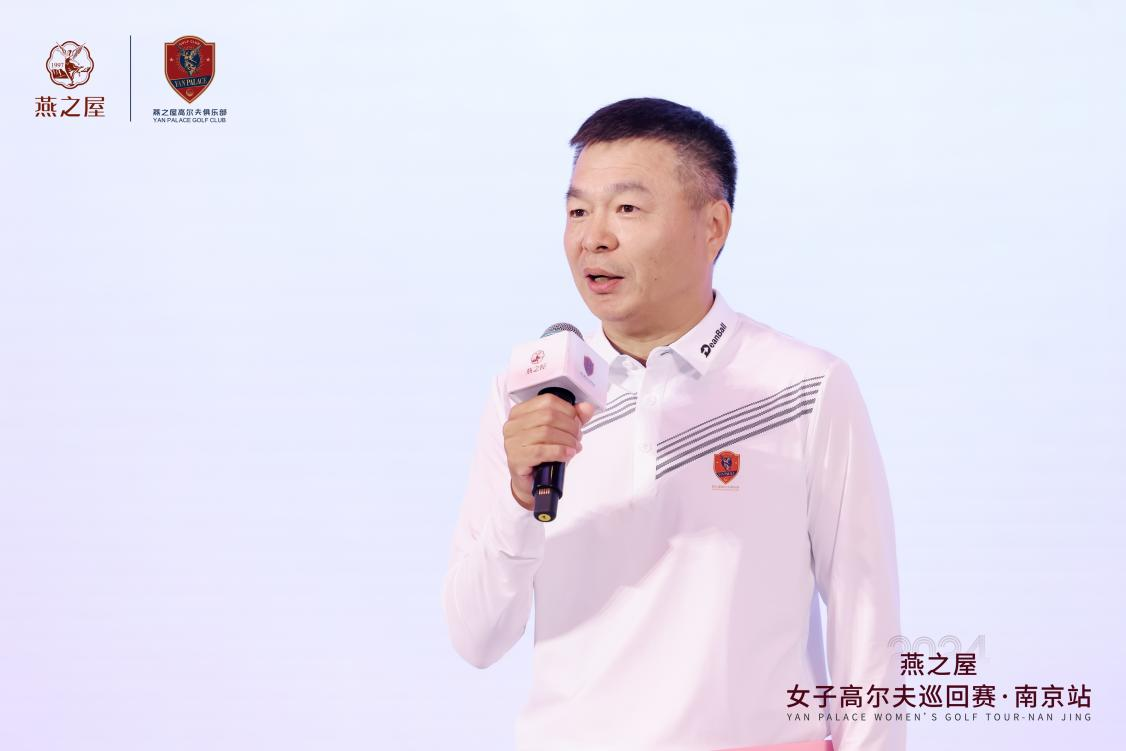 隨著最后一球精彩收桿,本次比賽結(jié)果塵埃落定,2024燕之屋女子高爾夫巡回賽·南京站頒獎晚宴華麗上演。江蘇省高爾夫球協(xié)會主席、蘇寧環(huán)球集團(tuán)董事長張桂平上臺發(fā)表致辭,他首先向到場的嘉賓選手們表示歡迎,并對2024燕之屋女子高爾夫巡回賽·南京站的成功舉辦表達(dá)祝賀。同時,他還對燕之屋長期以來鼎力支持高爾夫運(yùn)動、積極參與社會公益活動等行動給予高度認(rèn)可,更贊揚(yáng)女子高球選手們在雨中堅持完賽的頑強(qiáng)毅力以及巾幗不讓須眉的高超球技。