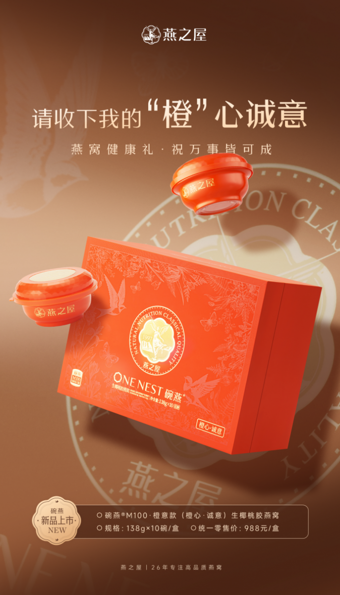 近日,燕之屋旗下高端燕窩品牌“碗燕”重磅推出新品碗燕®M100·橙意款(橙心·誠(chéng)意)生椰桃膠燕窩,天然薈萃、匠心品質(zhì),呈現(xiàn)“橙”心誠(chéng)意的燕窩健康禮,為日常送禮提供滋養(yǎng)優(yōu)選。