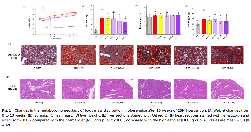 肥胖是一種慢性、復(fù)發(fā)性、多因素的疾病,并伴有代謝紊亂和其他相關(guān)的共病,如糖尿病、心血管疾病等,以多種方式影響身心健康。近年來,探索能夠改善肥胖相關(guān)糖脂代謝的食品已成為營養(yǎng)研究的焦點(diǎn)。燕窩作為一種滋養(yǎng)佳品,以其營養(yǎng)和滋養(yǎng)價(jià)值備受市場青睞。燕窩已被發(fā)現(xiàn)含有生物活性化合物,如9-O乙?;腉D3、糖肽、唾液酸、四乙酰-胸腺-d- 葡萄糖苷、表皮生長因子和葡萄糖調(diào)節(jié)蛋白*(*參考文獻(xiàn):M. Yuan, X. Lin, D. Wang and J. Dai, Proteins: Neglected active ingredients in edible bird’s nest, Chin. Herb. Med.,