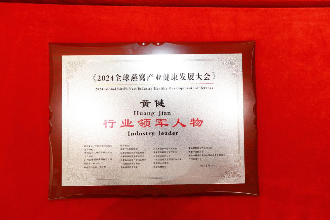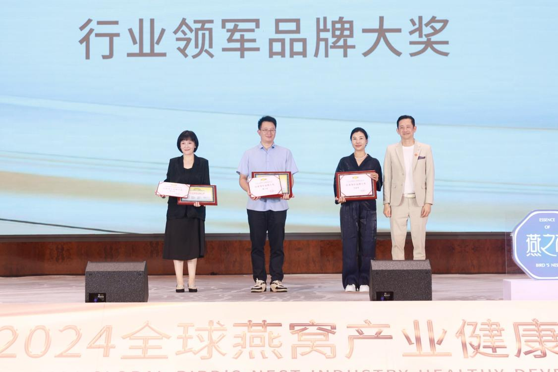 9月23日,在榜樣的力量一行業(yè)表彰盛典上,燕之屋憑借先進的創(chuàng)新引領(lǐng)力、卓越的產(chǎn)品競爭力、強勁的品牌影響力榮獲行業(yè)領(lǐng)軍品牌大獎、行業(yè)匠心品牌大獎、技術(shù)創(chuàng)新大獎,燕之屋創(chuàng)始人、執(zhí)行董事兼董事長黃健榮獲行業(yè)領(lǐng)軍人物;燕之屋傾情助力2024全球燕窩產(chǎn)業(yè)健康發(fā)展大會,進一步推動燕窩產(chǎn)業(yè)的創(chuàng)新發(fā)展,促進燕窩文化的傳承與交流,為行業(yè)的繁榮貢獻力量,獲頒《2024全球燕窩產(chǎn)業(yè)健康發(fā)展大會》戰(zhàn)略合作單位,并成為《2024全球燕窩產(chǎn)業(yè)健康發(fā)展大會》唯一指定碗燕即食燕窩品牌,燕之屋公關(guān)總監(jiān)楊航上臺領(lǐng)獎。