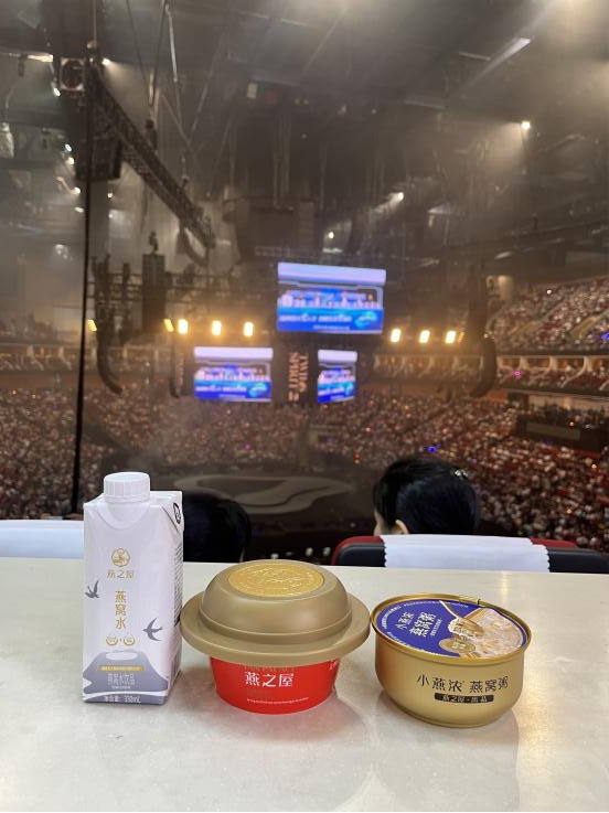 燕之屋專屬貴賓包廂位于場(chǎng)館包廂層觀演區(qū),以獨(dú)立豪華私享空間、劇場(chǎng)型座椅、餐飲服務(wù)等高級(jí)配置,為客戶打造舒適、自由、高品質(zhì)的觀演新體驗(yàn)。包廂客戶不僅可以享受專屬便捷入場(chǎng)通道、視野廣闊的沉浸式觀演,還可享用燕之屋小燕濃燕窩粥、燕之屋燕窩肽天然蘇打水,升級(jí)美好視聽盛宴。燕之屋借助持續(xù)火爆的演出市場(chǎng),將品牌傳播與演唱會(huì)創(chuàng)新結(jié)合,通過邀請(qǐng)觀看演唱會(huì)的方式答謝忠實(shí)客戶,深受客戶喜愛。