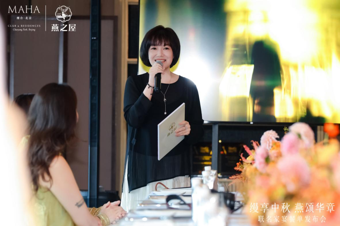 燕之屋公關(guān)總監(jiān)楊航則在致辭中闡釋了這次跨界合作的文化深意:“燕之屋與如此杰出的伙伴合作,正是基于雙方對(duì)品質(zhì)、細(xì)節(jié)與人文關(guān)懷的共同追求。我們都認(rèn)同,真正的高級(jí),在于將真誠(chéng)融入服務(wù),將文化寓于美食,讓每一次相聚,承載更深厚的情感與記憶。此次聯(lián)名中秋家宴菜單,是我們雙方團(tuán)隊(duì)多次溝通、靈感碰撞的成果。愿這一席宴,成為這個(gè)秋天您與家人、摯友之間溫暖相聚的美好注腳。”
